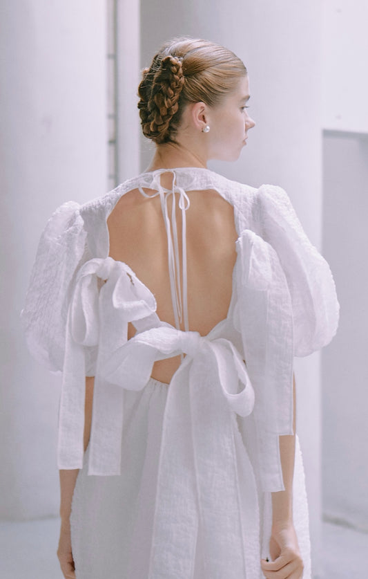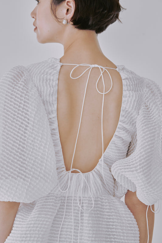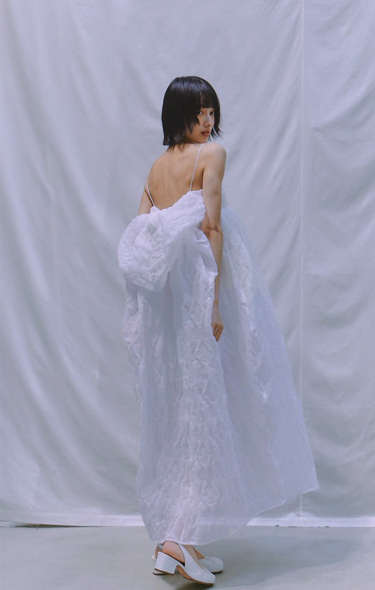 二次会や前撮りにもおすすめのドレスです。試着は3Fにてしていただけます。