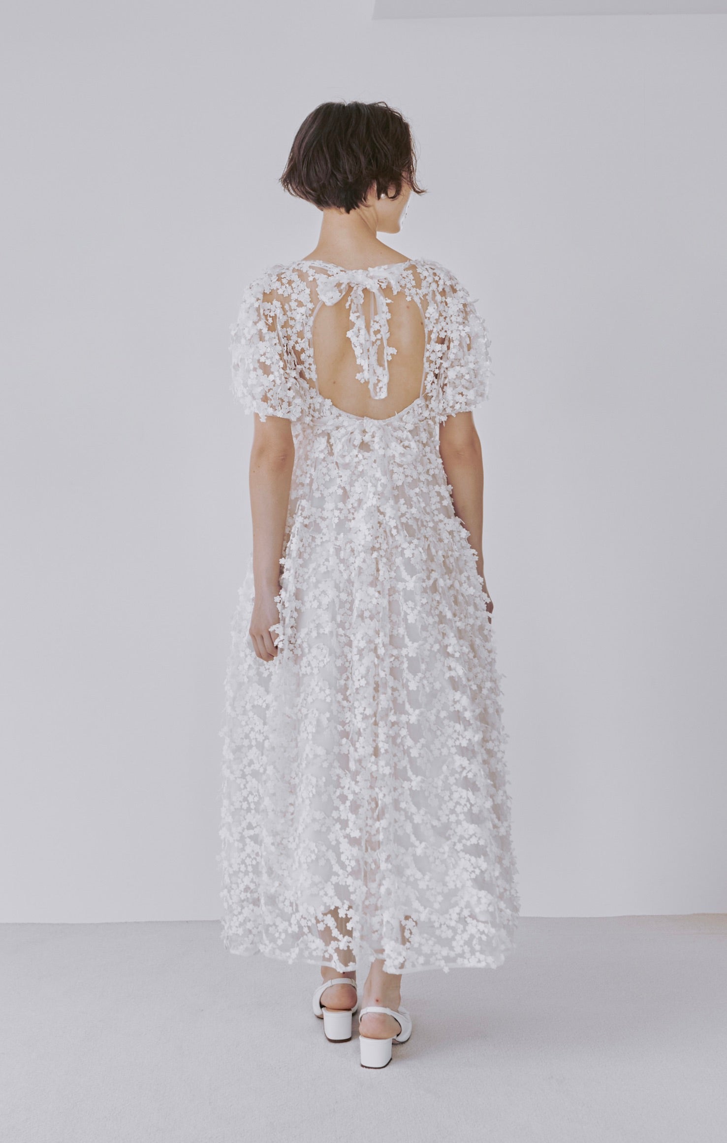 A dress featuring a full skirt and voluminous puff sleeves that are unique to Celysee Vansen.
