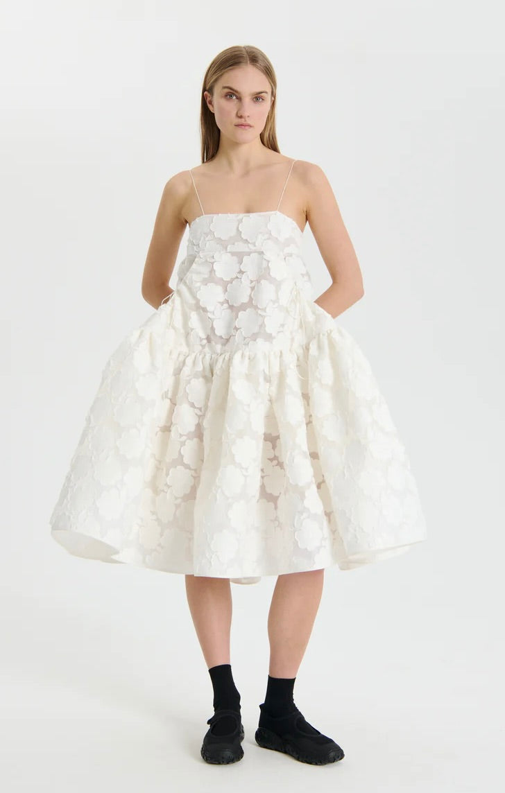 Cecilie Bahnsen, a Copenhagen-based designer, creates a womenswear line celebrated for its romantic and feminine silhouettes. This exclusive piece has been thoughtfully tailored to flatter wearers' body frames, delivering an effortlessly graceful and unique fit.