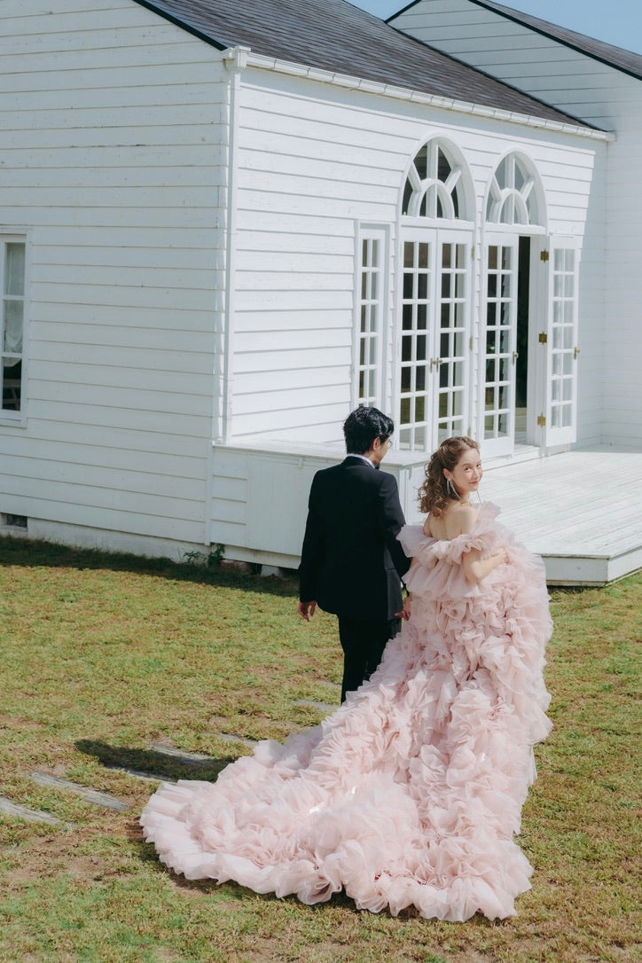 ボリュームがあるので天井の高い会場やラグジュアリーホテルにもぴったりなインパクトのある1着◎