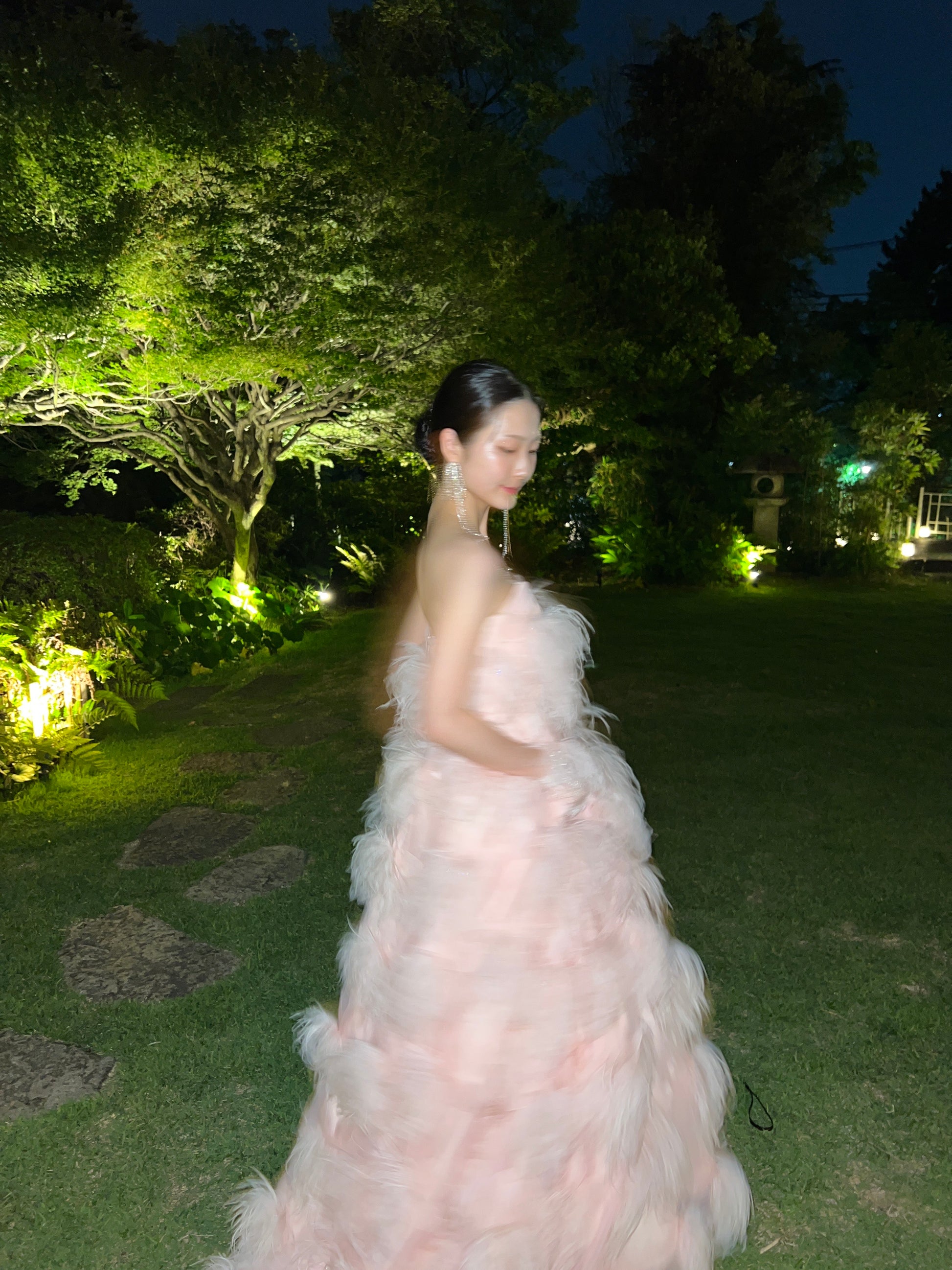 動くたびにふわっと揺れるフェザーがロマンティックな印象に。