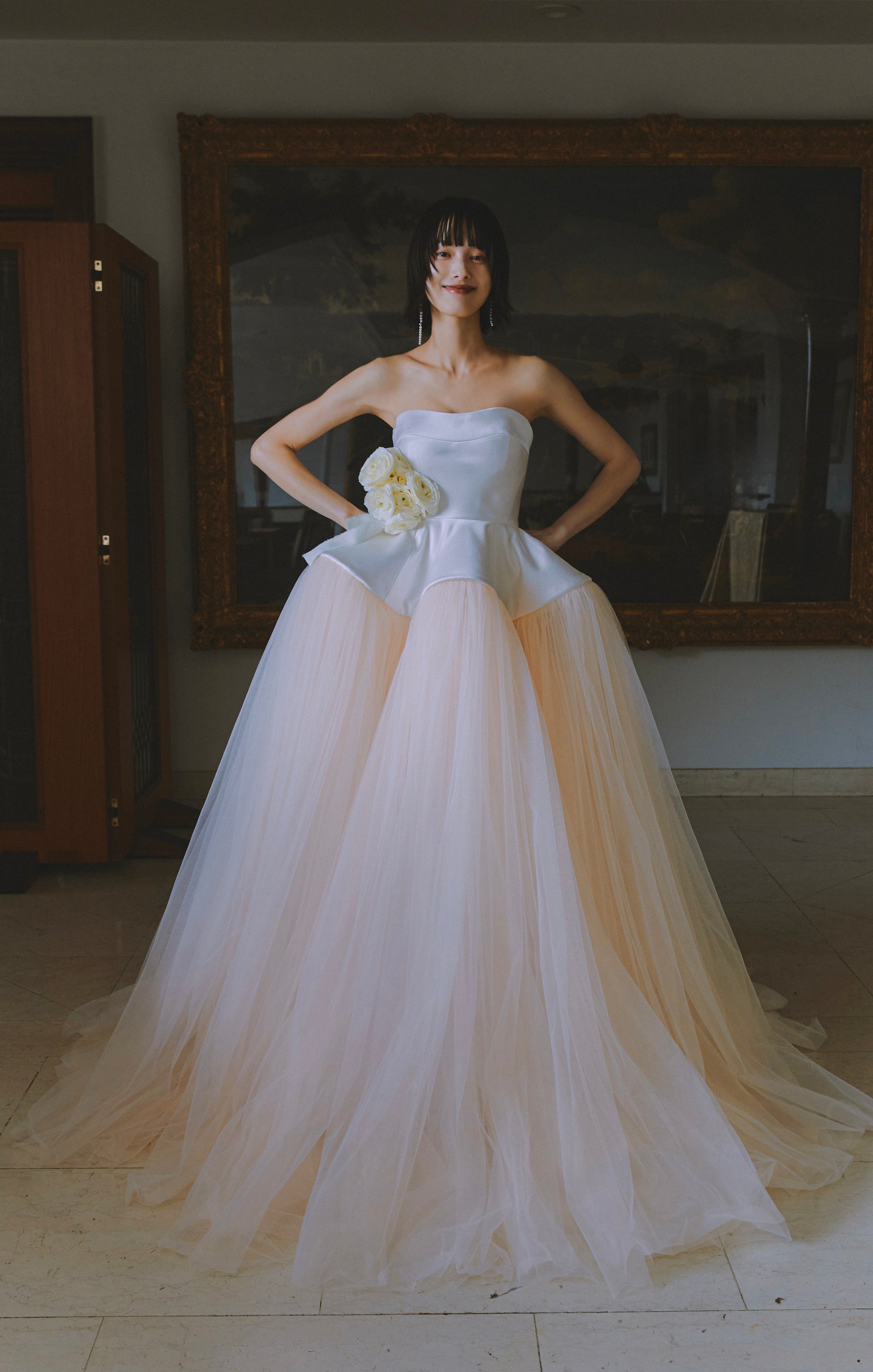 柔らかなチュールが繊細でロマンチックな印象に。